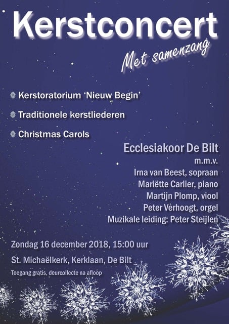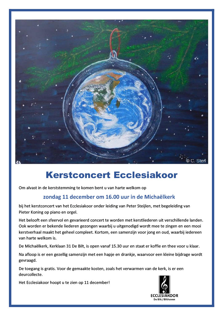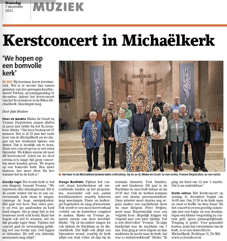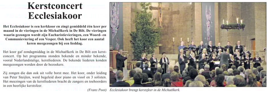 Op zondag 16 december 2018 heeft het Ecclesiakoor een kerstconcert met samenzang in de Michaëlkerk verzorgt.